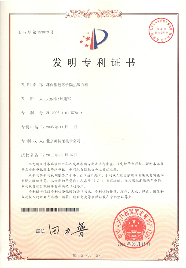 開(kāi)發(fā)了環(huán)保型隔熱服面料等專利產(chǎn)品