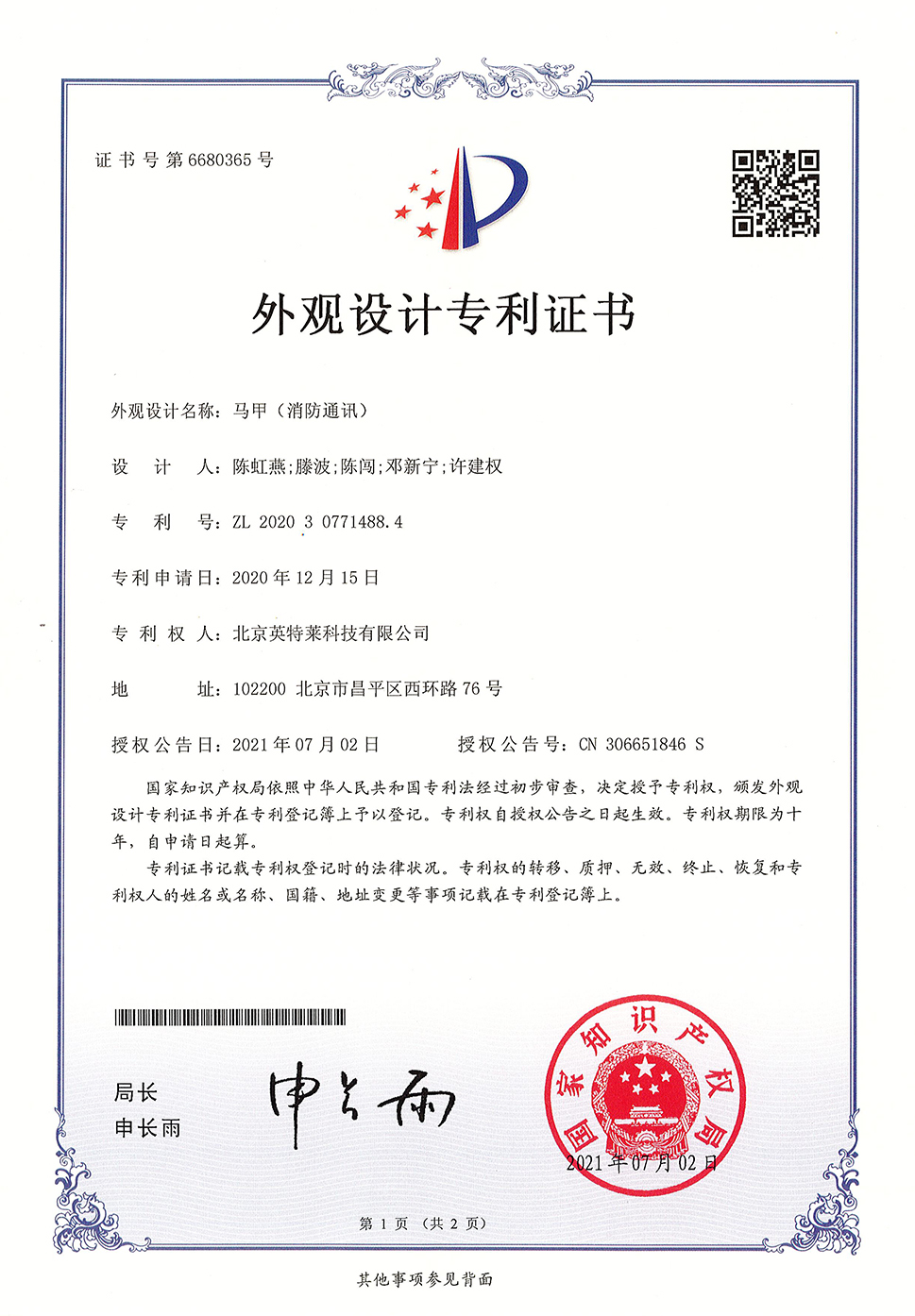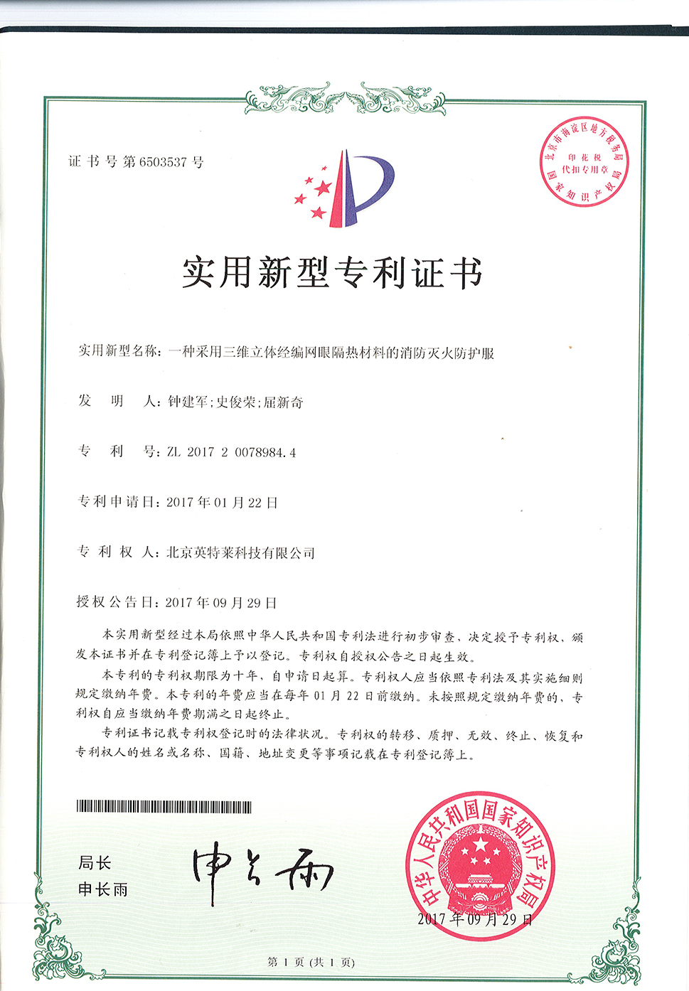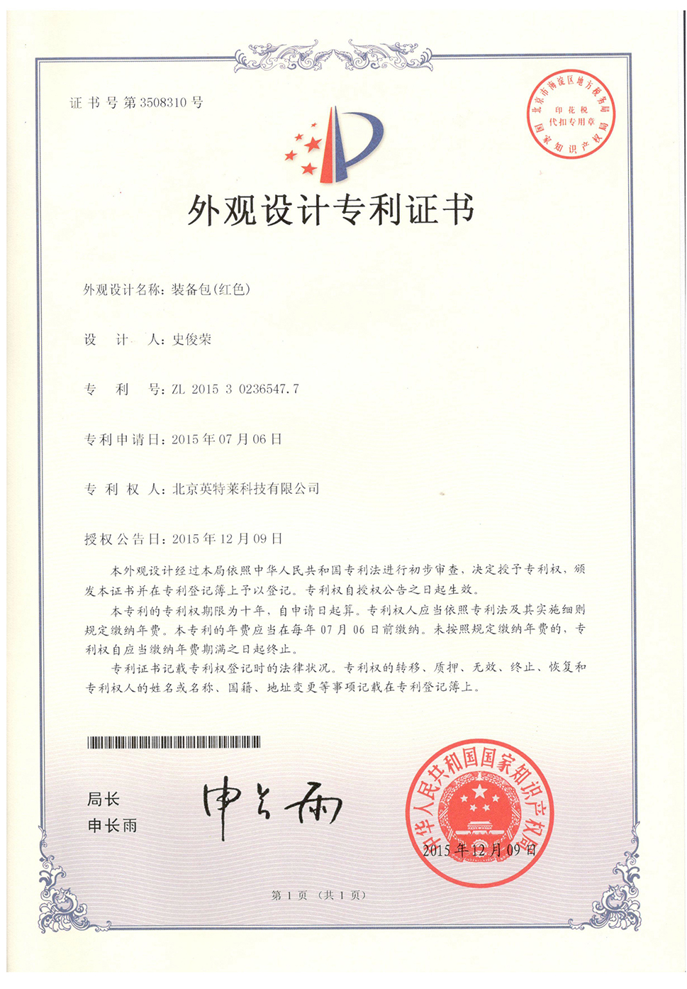 專利證書(shū)