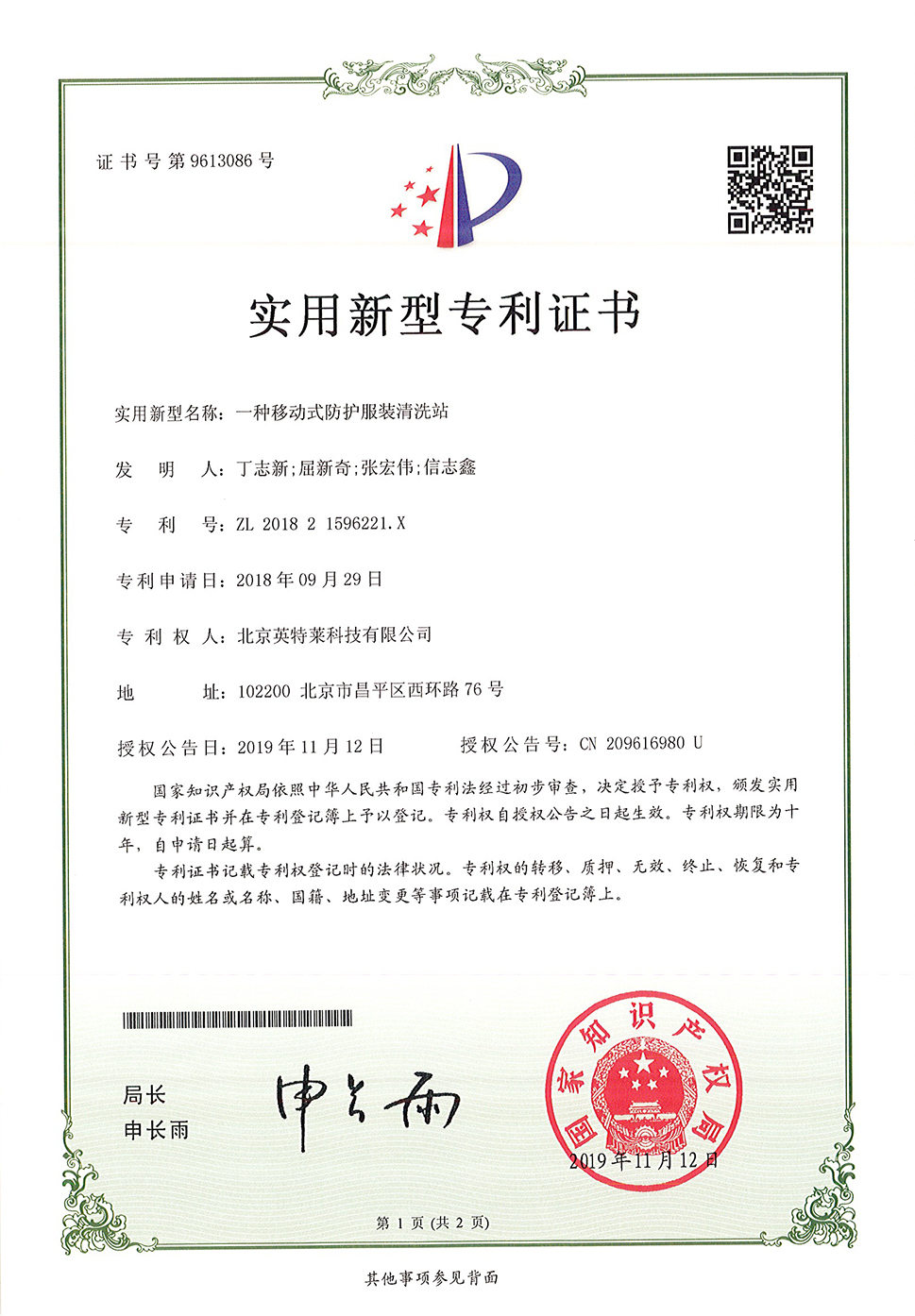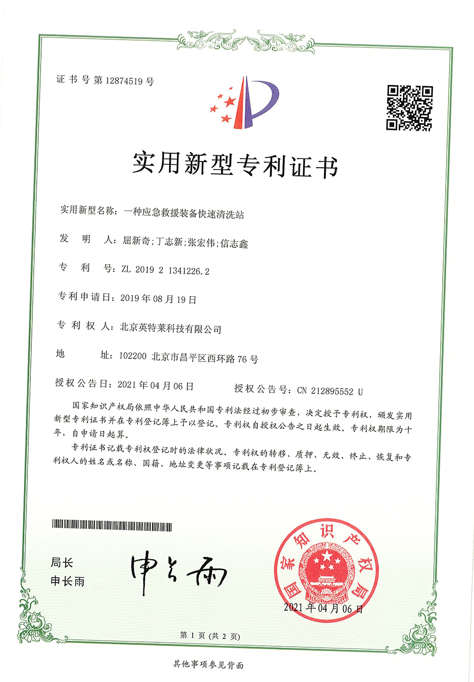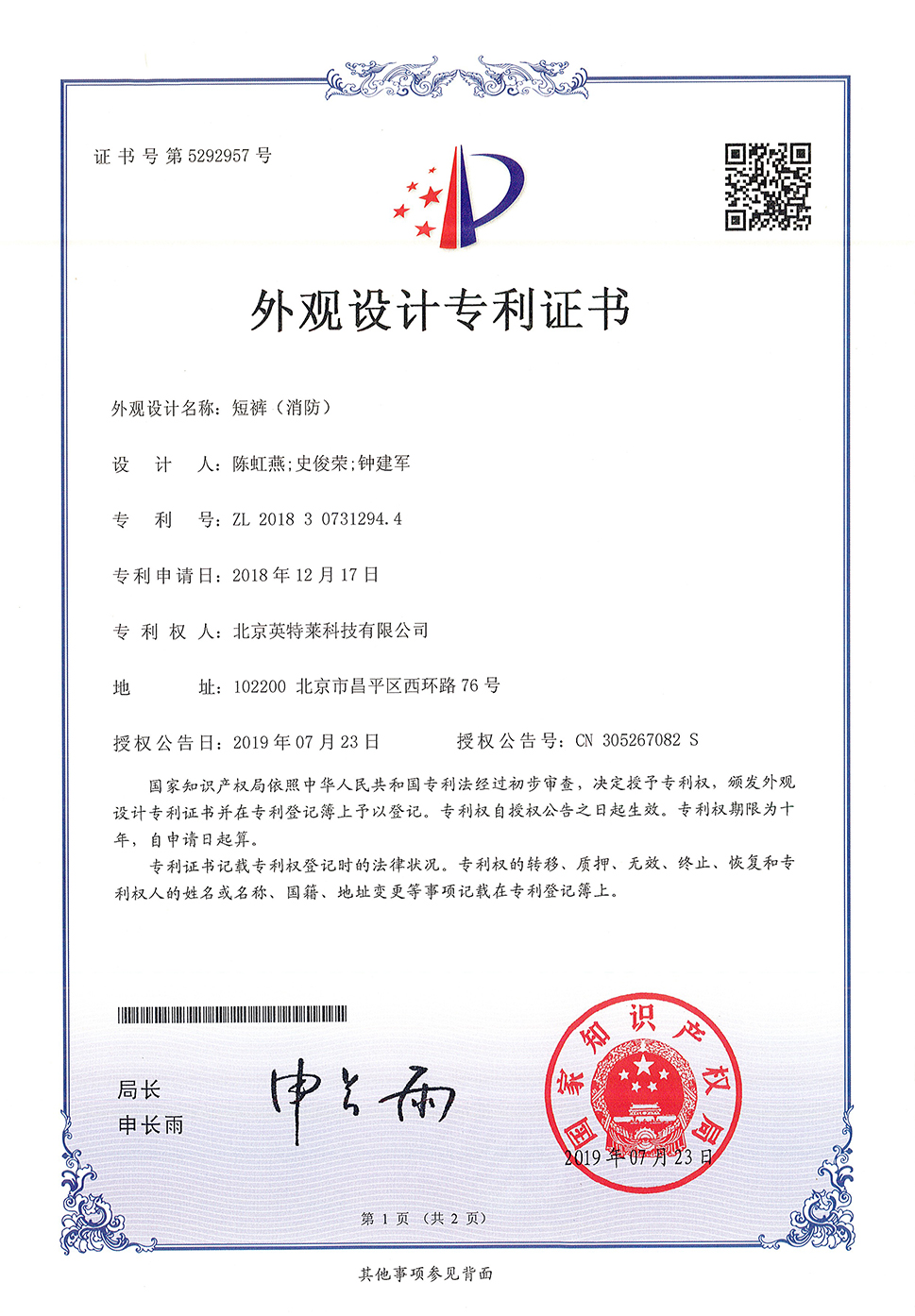 專利證書(shū)