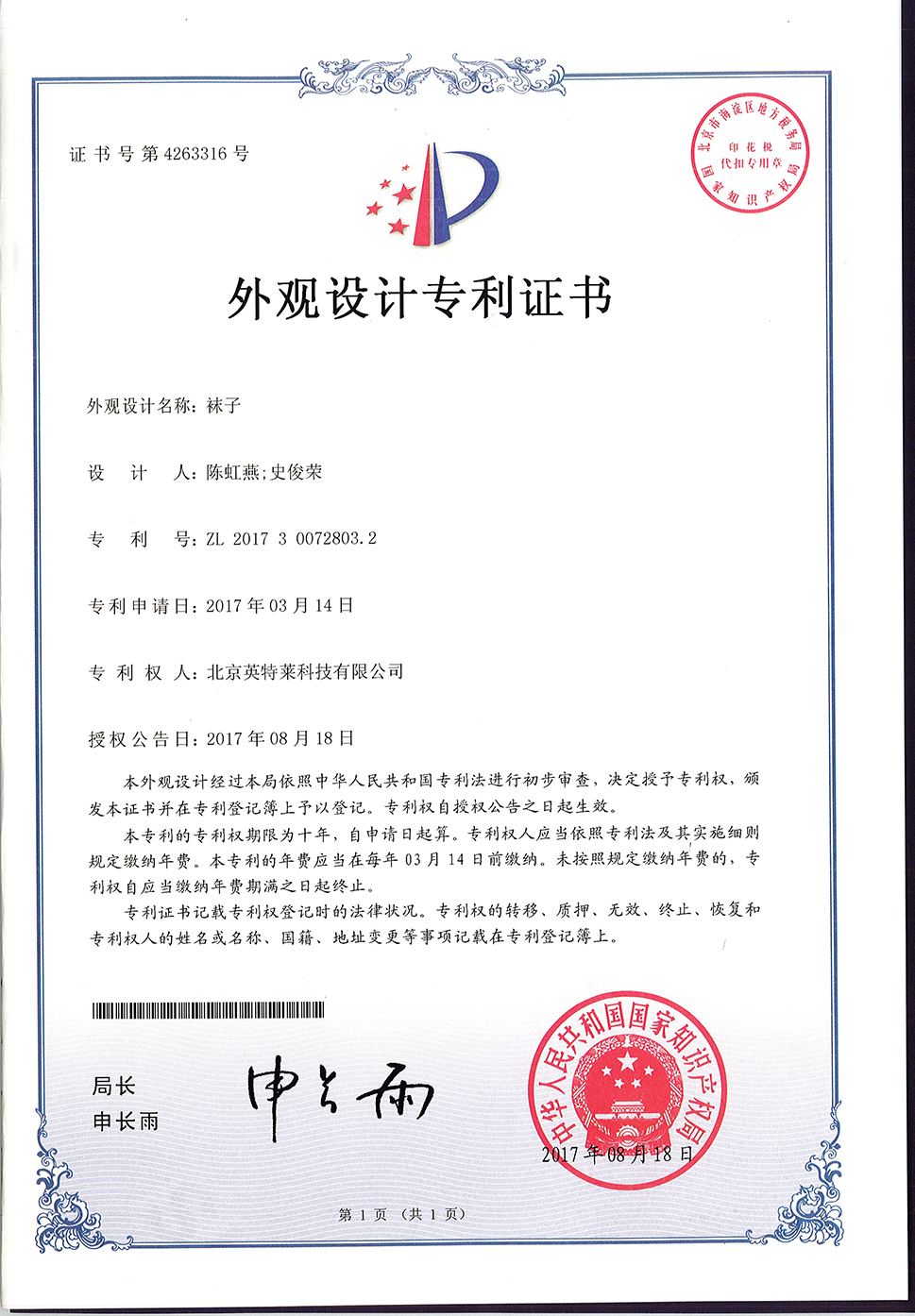 英特萊?商標(biāo)獲國(guó)家注冊(cè)